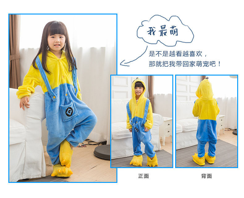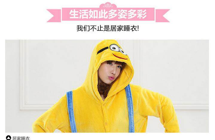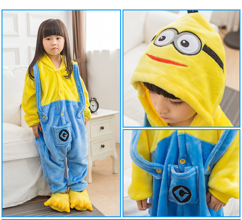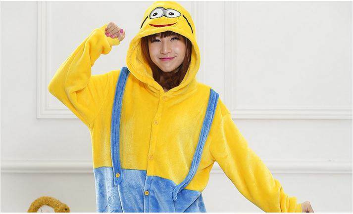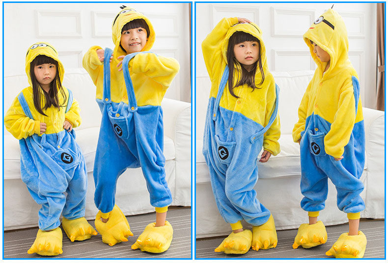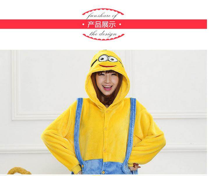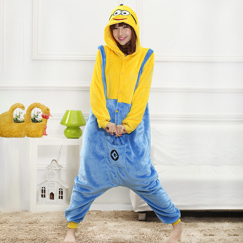 Pijama unissex Minion Kigurumi, flanela inverno, flanela inverno, desenhos animados Cosplay, Halloween Costumes, Onesies, adultos
